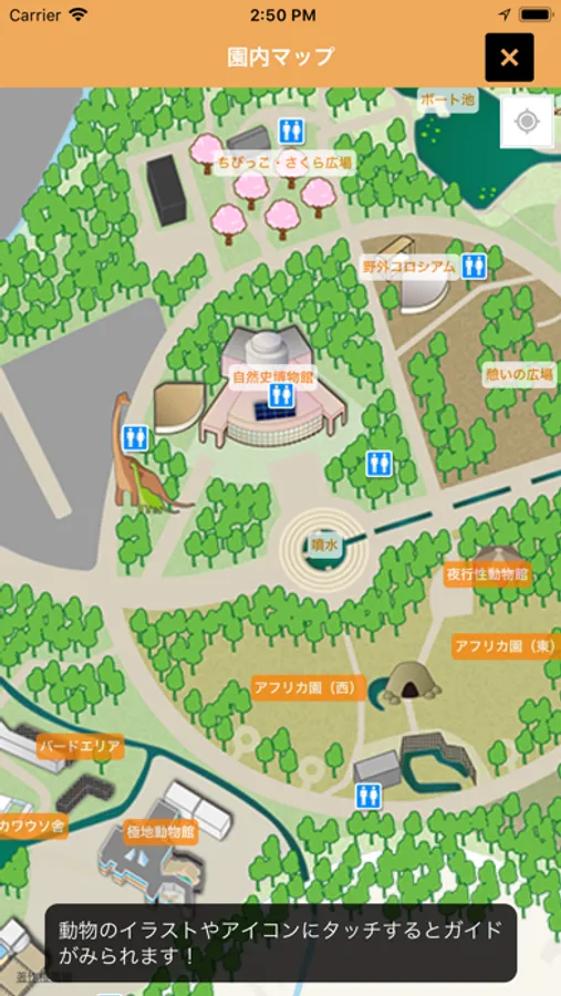園内マップ ・GPSによる現在地表示で、園内をスムーズにご案内!