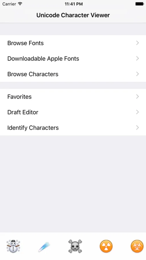 This app lets you explore the world of Unicode glyphs. The languages of the world contain some beautiful letter forms, and Unicode Character Viewer gives you an easy way to search for characters, mark your favourites, and share them with others.