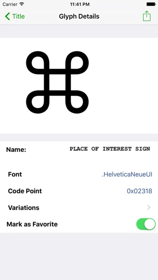 * Mark glyphs as favorites for easy reference.