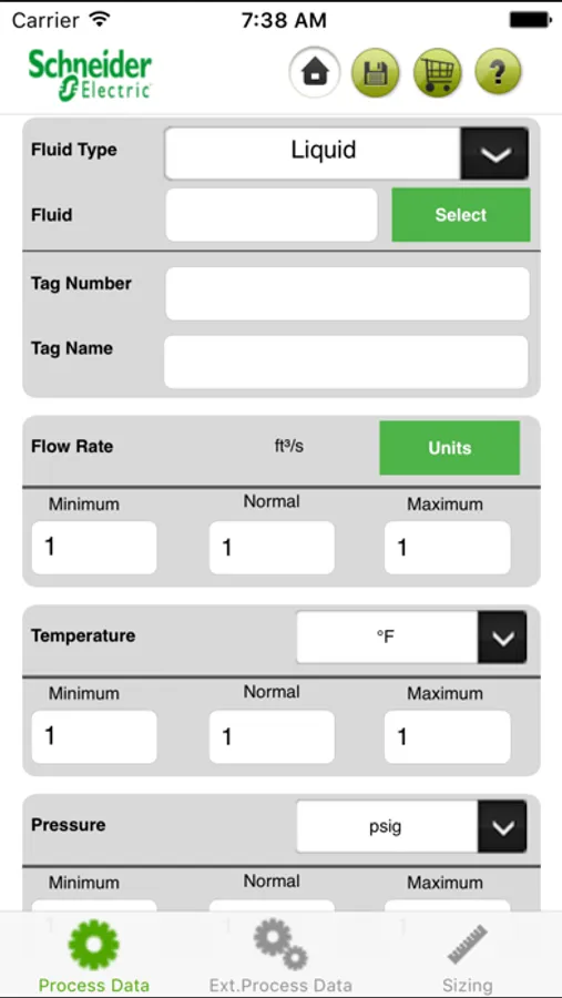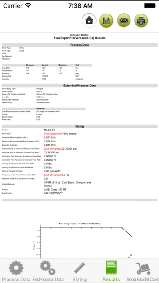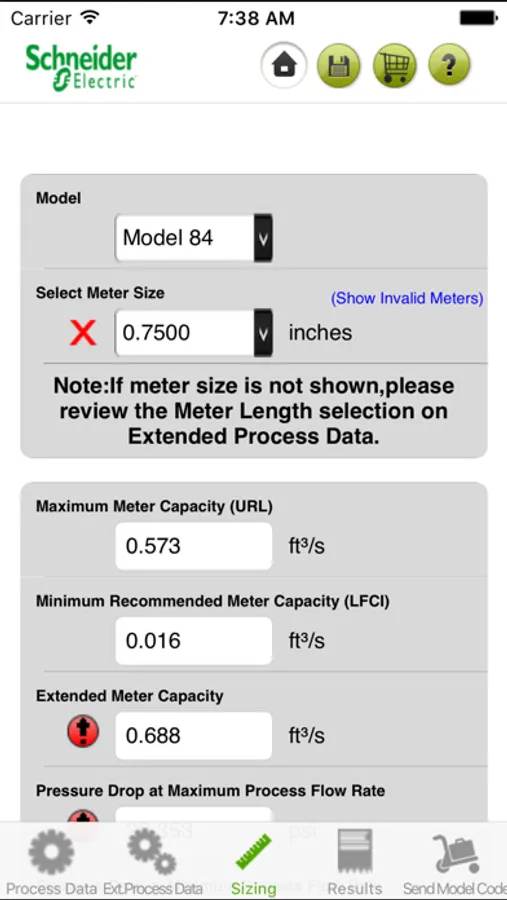 1)Size the meter for a process fluid selected from the application's database, or enter a process fluid with its physical data.