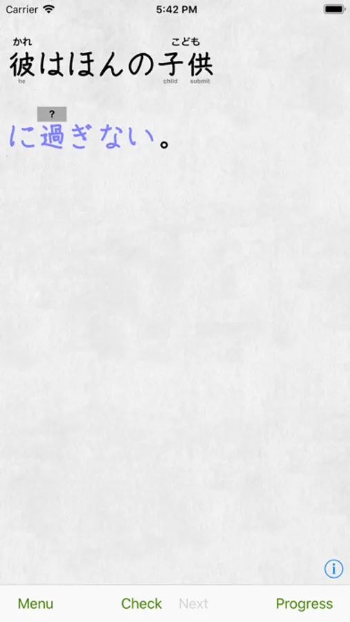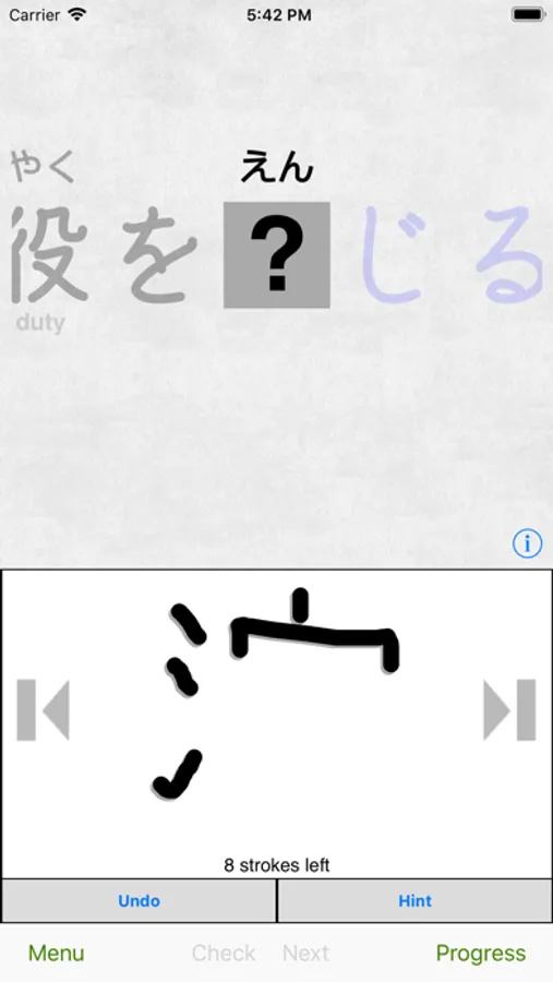 The application features two modes of play. One for reading, where you fill in the missing furigana, and one for writing, where you draw in the missing kanji. In writing mode, your kanji will be graded using the unique grading algorithm from our popular Japanese My Way application.