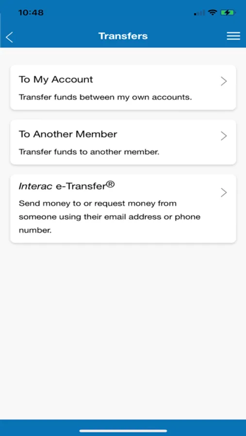 • Transfer money between your accounts, to other Credit Union members, or use Interac® eTransfer to transfer funds to other financial institutions.