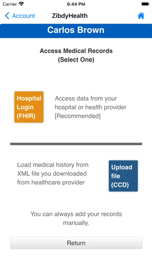 (Note that your healthcare provider is legally responsible to share your health information with you. There are two ways to do this electronically. ZibdyHealth now supports both ways – FHIR (direct access “recommended”) and CCD (file downloads). You must create an account with your healthcare organization to retrieve your data. If you need assistance accessing your existing account, visit your health care organization's website for support options. Contact your provider directly regarding questions about your health record.)
