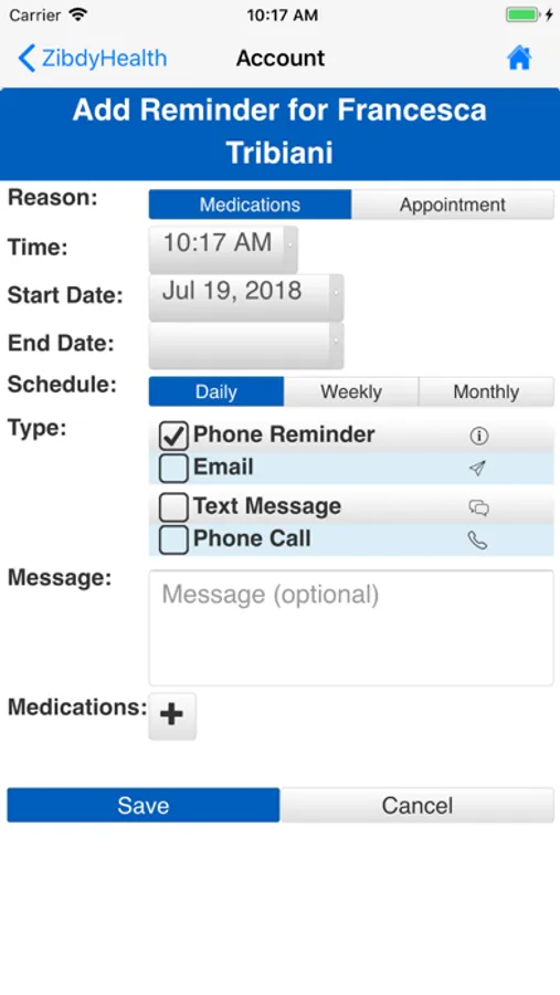 Set up REMINDER for taking medications, appointments or immunizations.
