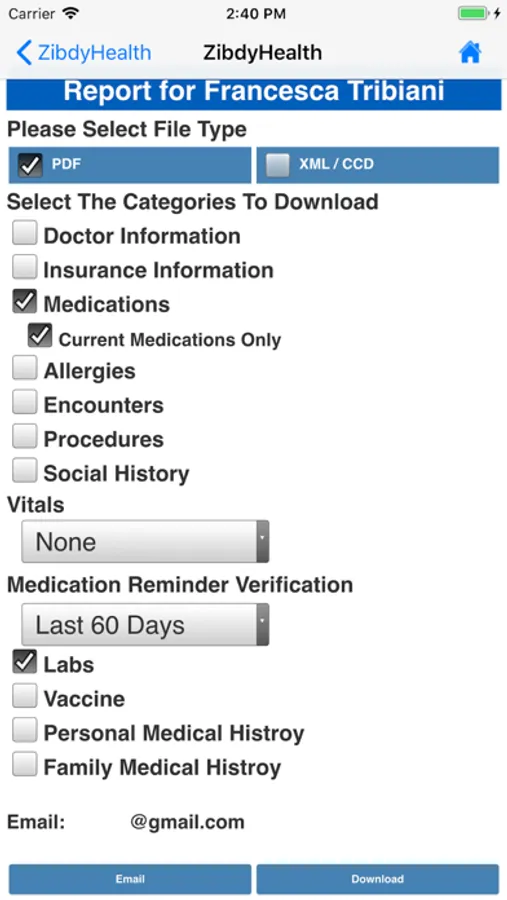 Create a CONSOLIDATED REPORT of your health records.