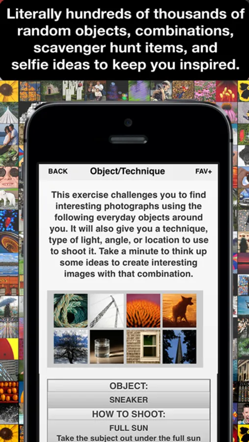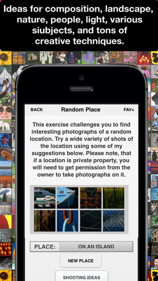 This is a completely unique app about IDEAS and INSPIRATION for taking photographs, not about filters or effects.