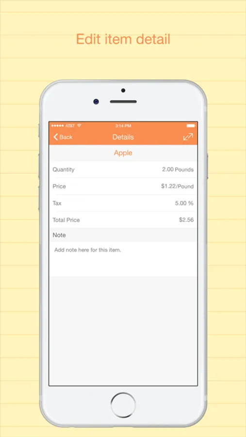 ⁃ Show quantity, price, and total price of an item and add note to it.
