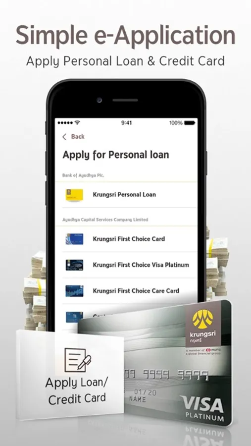 - Apply electronic savings account, Credit Card, Krungsri iFIN, Krungsri Car4Cash, Insurance, Krungsri Boarding Card and Subscription for Debenture/equity.