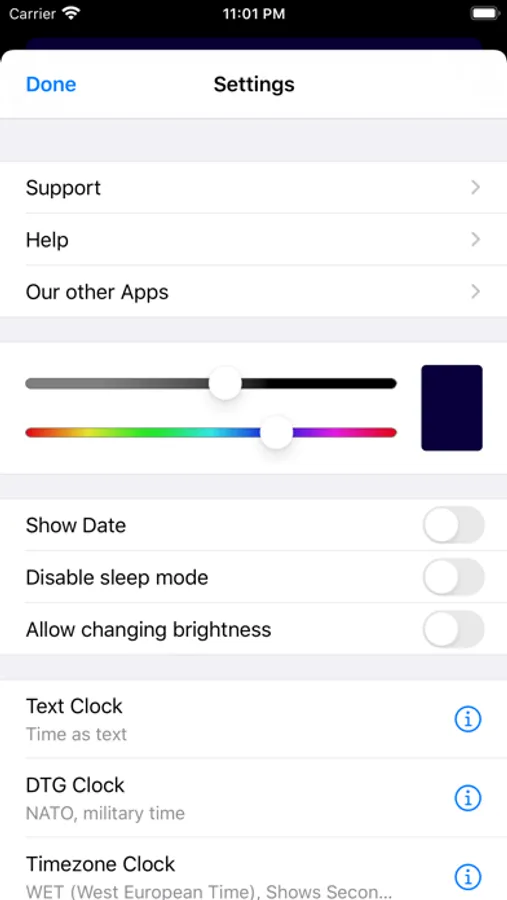 The App shows the time in big letters which are easy to read even from the distance. So you can use an (old) iOS device put it on a shelf so it just shows the time.