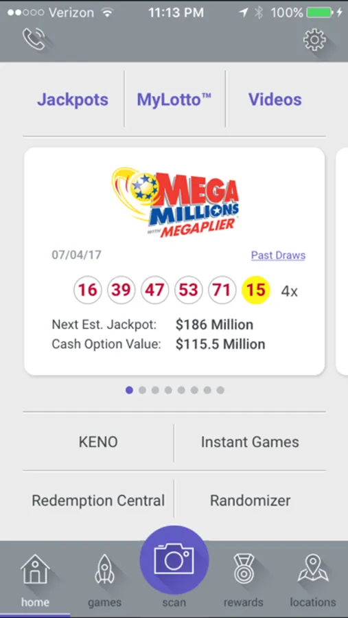 - Current and past winning numbers for all draw games