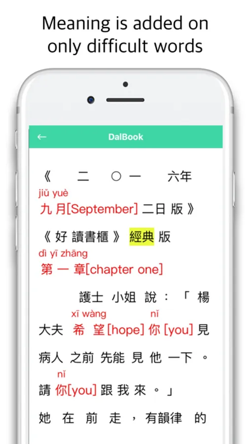 ▪ This App highlights the difficult words in a different color and gives a definitions