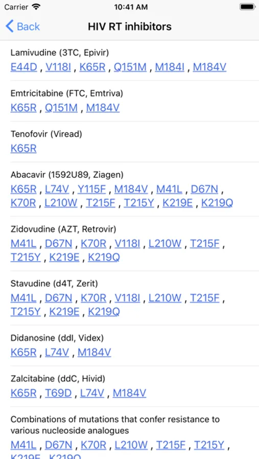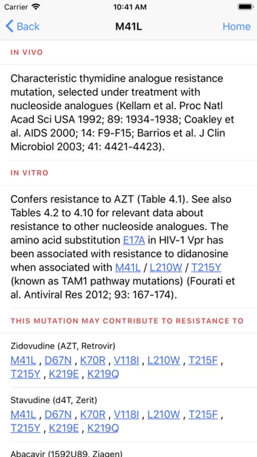 in vitro and in vivo information is provided for each specific drug resistance mutation