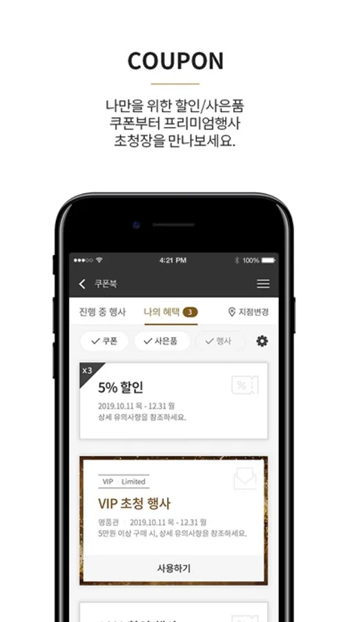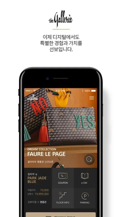이제 갤러리아 백화점에서 쇼핑 시, 갤러리아 앱은 필수입니다.