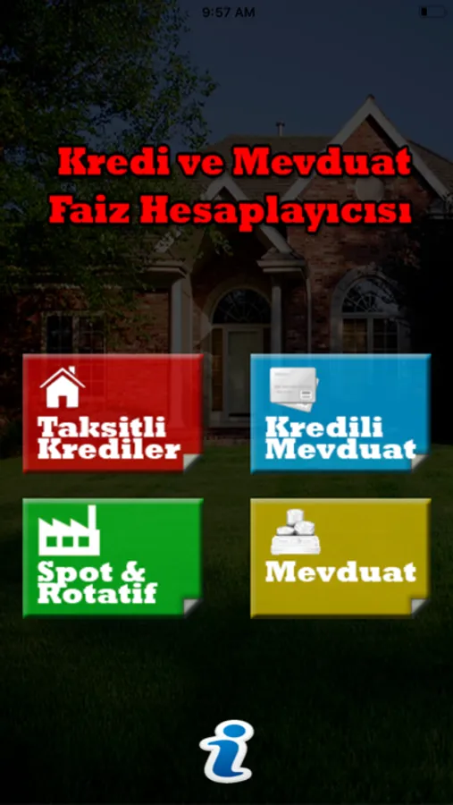 Aşağıdaki listede belirtilen krediler ile mevduat faizi hesaplaması yapar.