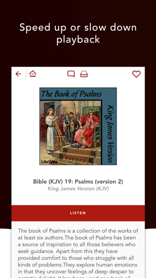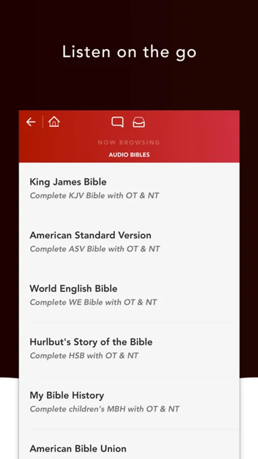 Indulge in in your favorite Psalms while taking a jog, or revisit passages from the Old Testament while in line at the bank. With the Audio Bibles app you can stay connected with Him no matter where you are.
