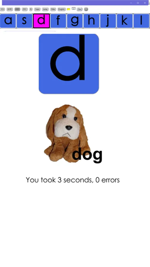 This app is designed by an Occupational Therapist to help children with physical or learning disabilities identify where keys are on the keyboard, then learn to type and spell.