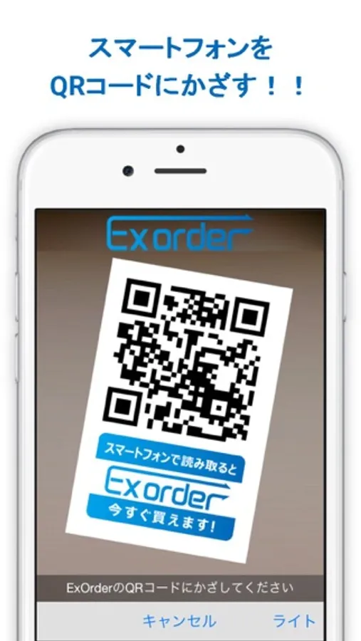 ※ 当アプリは、ExOrder専用QRコードのみ読み取り可能です。一般のQRコードは読み取れません。