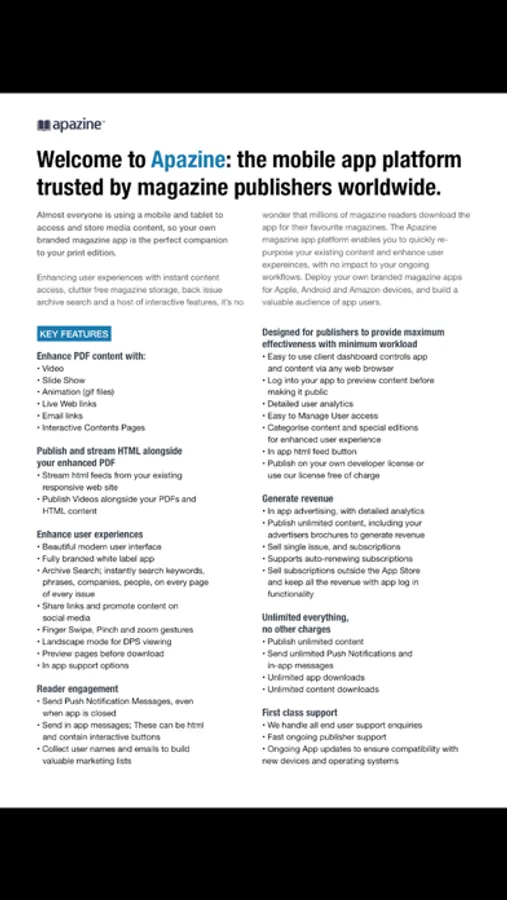 Apazine enables you to publish your magazines, brochures, books, documents and catalogues on tablet and smartphone devices. Our system gives you the easy transition from print to tablet and requires no software or coding skills.