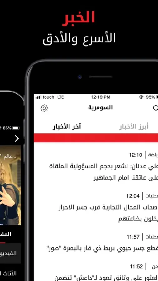 السومرية، المصدر الأدق للأخبار في العراق، تطلق تحديثا جديدا ومتطورا لتطبيقها. كن الأول في معرفة الأخبار واستمتع بمشاهدة مسلسلاتك المفضلة على موبايلك من خلال البث المباشر أو مشاهدة الفيديوهات والبرامج.