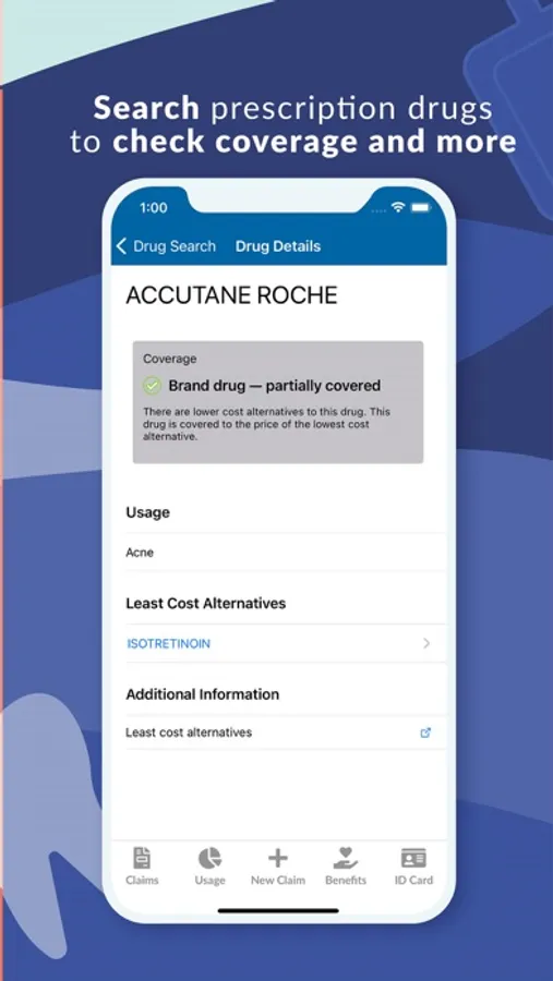 • Search prescription drugs to learn if they’re covered and learn about any alternative drugs that may be available