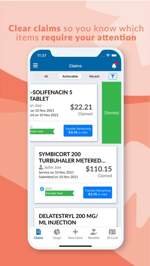 • Transfer unpaid claim amounts to your HSA with the tap of a button