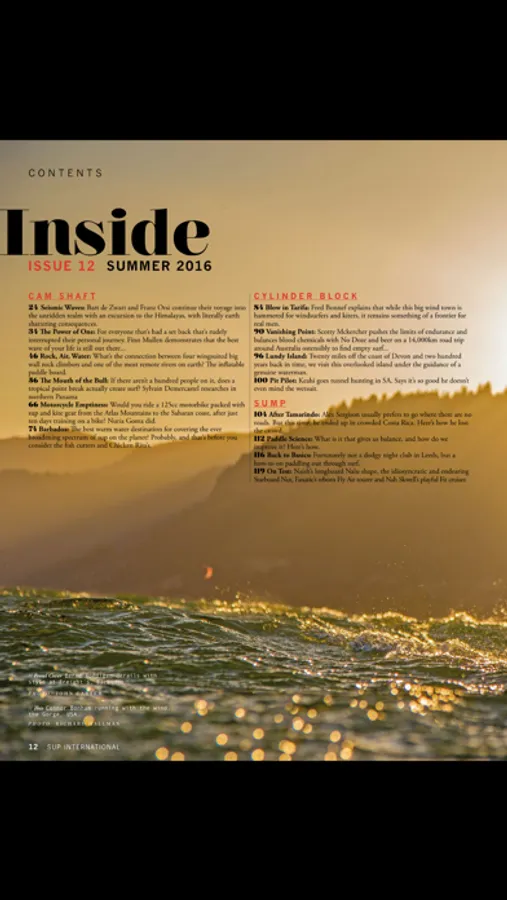 Founded in 2008, SUP International Magazine is loaded with amazing photos, interviews with the sports biggest names, technique tips, product tests and trips to the coolest spots. A definitive guide to the sport of stand up paddle boarding, we're constantly showcasing new products, discovering new angles, unveiling the most critical action and aim to make you a better and more motivated paddle boarder. Published twice a year.