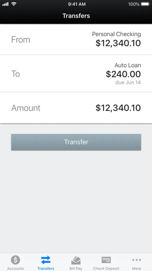 Transfer money, review balances, deposit a check, or find the closest ATM/financial center with a simple touch of a button.
