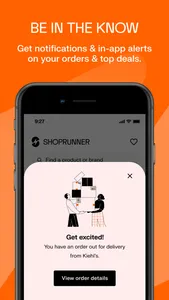 Track orders easily with the ShopRunner app. With a connected Gmail account, online orders from hundreds of stores will be gathered, tracked, and organized in the app — even those not ordered using ShopRunner. Think of it as a personal package tracker that provides alerts on order arrivals, delivery date changes, retailer/carrier contact information, and more.