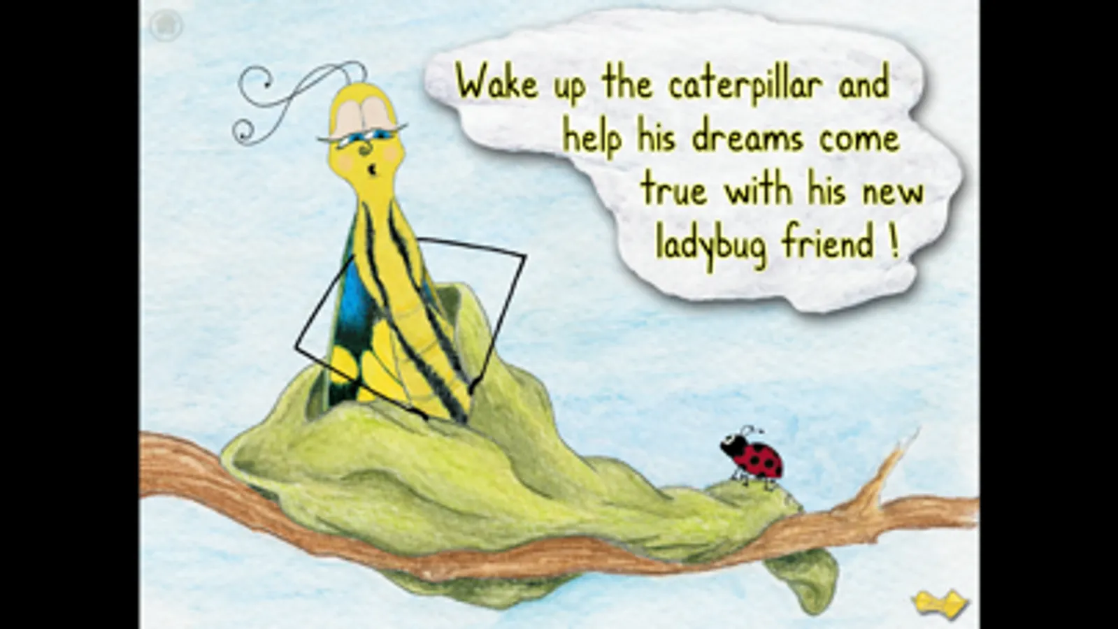 Do caterpillars dream as they sleep nestled in their chrysalis? And, if they did, what would they dream about? Peer into the thoughts of a curious ladybug in this animated and interactive children's book. Touch the screen to find hidden winks, jumps, wave, peek, or flit and fly.