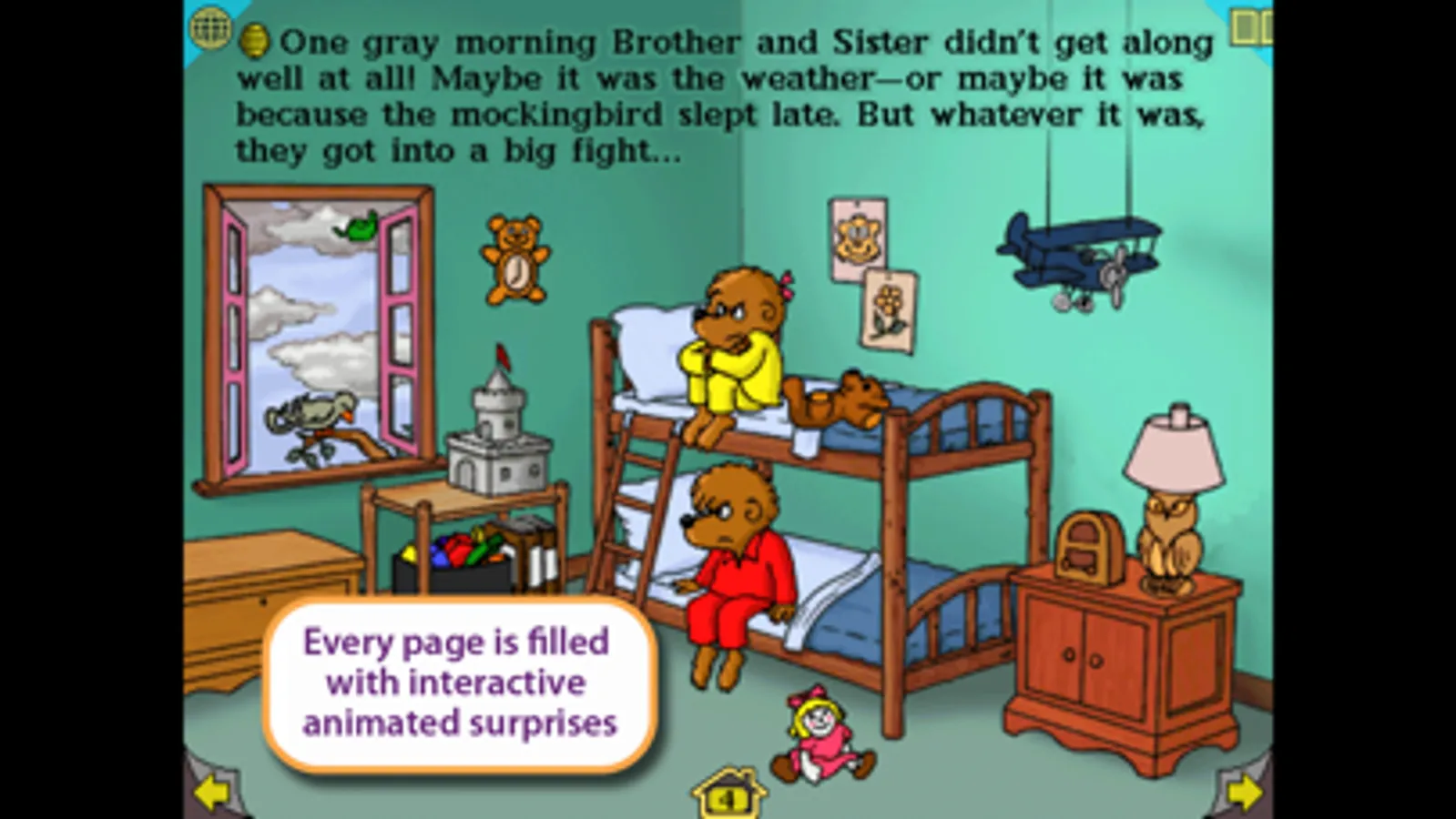 Have you ever wished you could play inside a story and really interact with all the characters and words? Now you can! The Berenstain Bears Get In A Fight is an imaginative interactive reading experience with fully animated content featuring the popular Bear Family – Mama Bear, Papa Bear, Brother Bear, and Sister Bear.