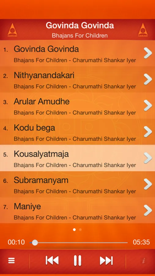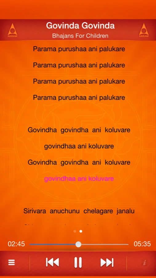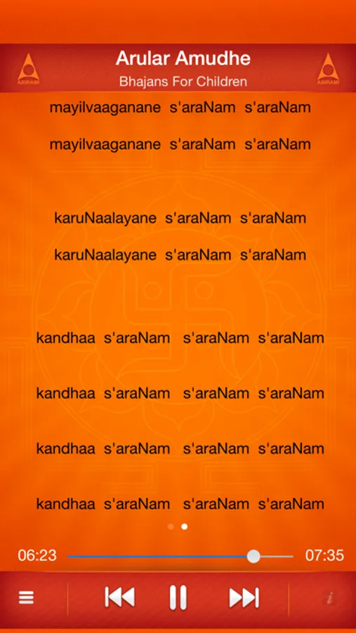 Smooth lyrics playing animation will help your kids to follow the bhajan in a easy manner.
