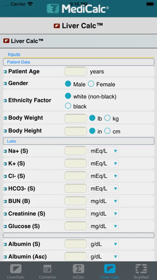 LiverCalc™ facilitates the organization and processing of Patient's data. It is a provider-friendly™ app, intuitive and very easy to use.