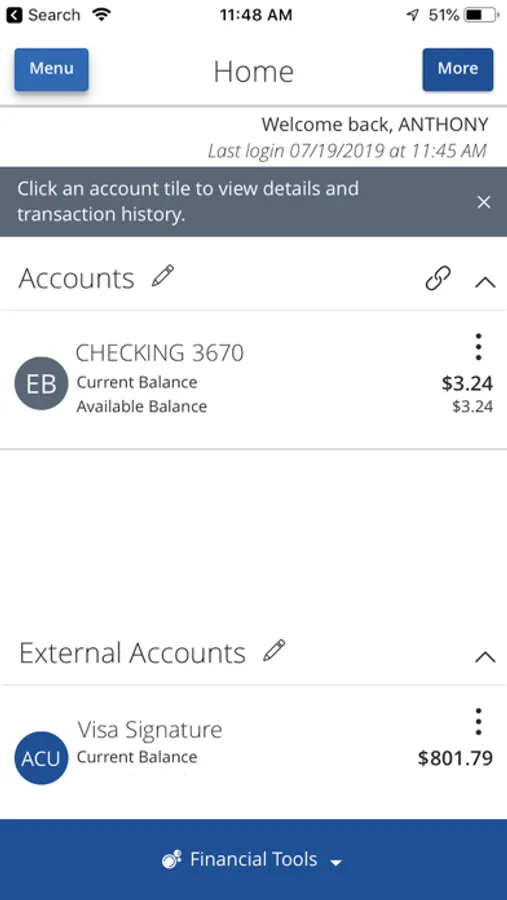 Our mobile banking application allows you to check balances, transfer funds, view transactions and check messages anywhere, anytime. It’s fast and available to all of our online banking users. With this app you can: