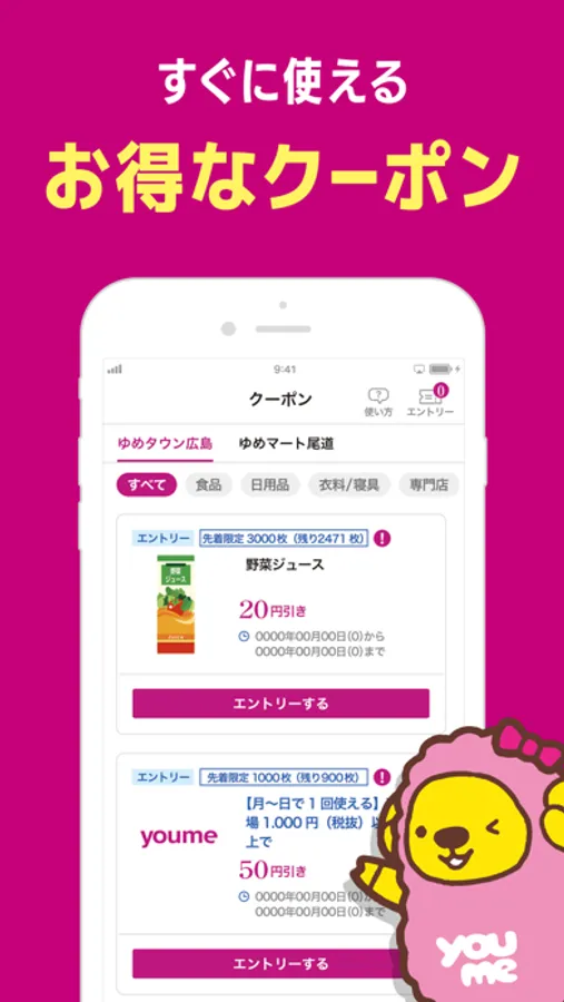 ・簡単登録で、アプリを電子マネーゆめか/ポイントカードとしてご利用いただけます。