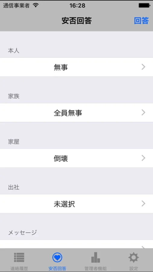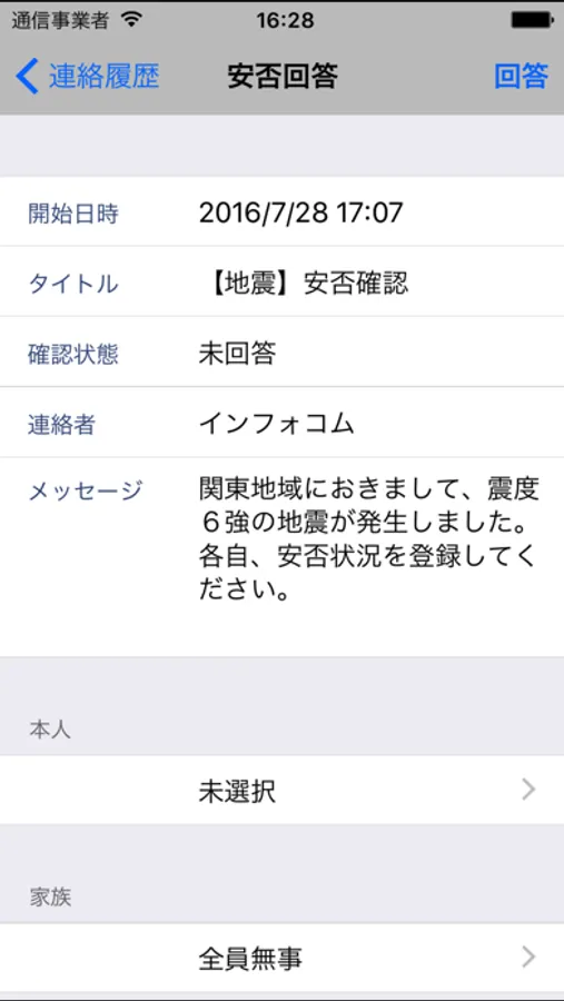 自分宛てに届いた緊急連絡に対して、確認操作や、安否回答、質問回答が行えます。