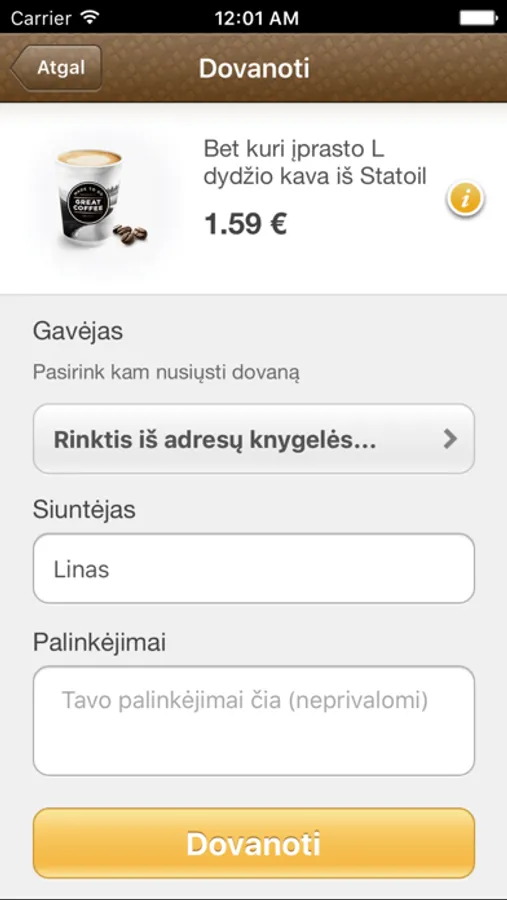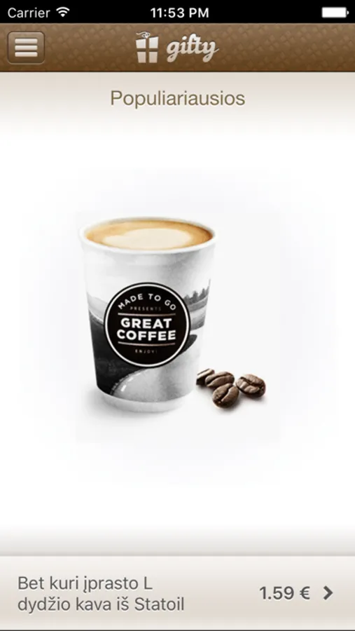 Gifty app is perfect to send a small present instantly from you phone on any occasion – whether it’s birthday, new job or simply a nice day: open Gifty, browse gifts, select recipient, type in your wishes, choose desired type of payment and Gifty will deliver your gift in seconds. Gifts are sent as SMS of e-mail with unique code for redemption at merchants place.