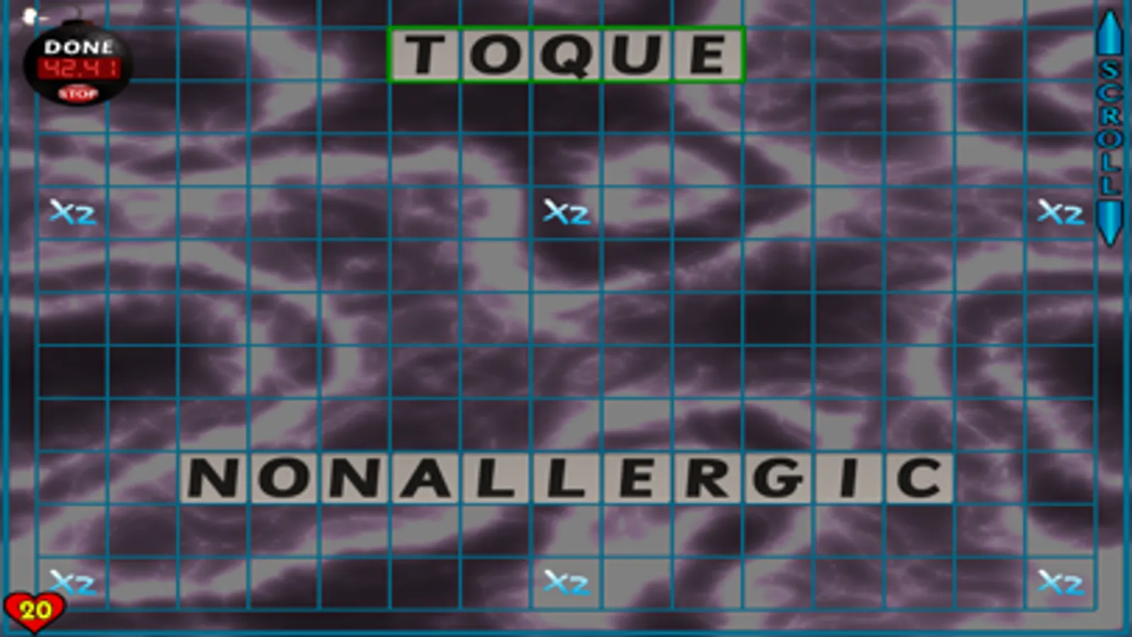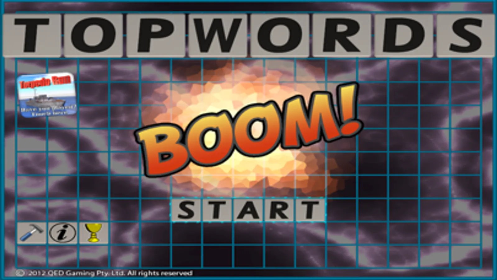 TopWords is an addictive new word creation game. The game starts with an 'anchor' word chosen from the huge 135,000+ dictionary already placed on the board. The game then choses another word for you to break up and place on the board. The new words you create must be connected to any already placed words on the board. Be quick as you must finish the round before the bomb explodes.