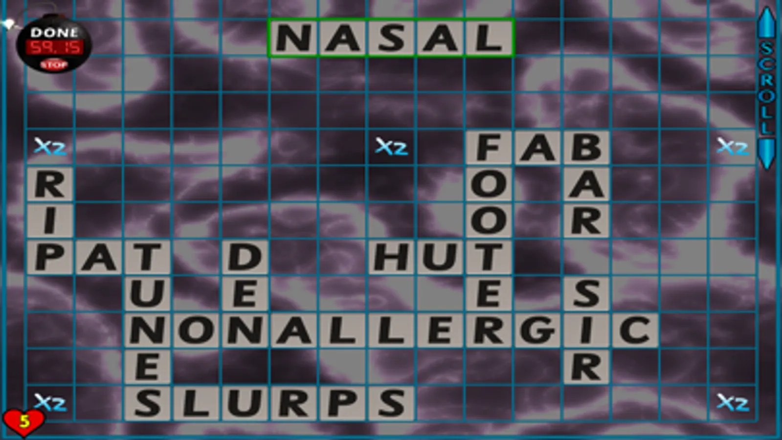 Manage to place a word on one of the bonus squares and earn double,treble or quadruple points, not to mention the board also contains some high additional point squares.