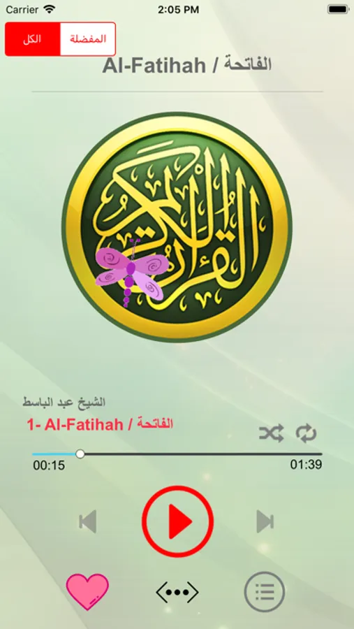 1 - a complete list of all of the wall of the Holy Qur'an during which you can choose from to listen to Surat you want