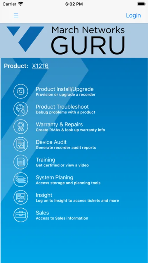 GURU takes you through a troubleshooting decision tree with an interactive graphical utility to help you identify issues quickly. GURU uses filters to narrow down search criteria on faults seen in the field. These corrective actions also contain diagrams to further assist technicians who may not be thoroughly familiar with specific units. GURU also provides access to known problems to help quickly resolve field issues. If required, the app allows you to instantly check product warranty status and submit a ticket or an RMA using the unique QR code on the NVR. Once an RMA has been submitted, GURU allows you to track the shipment status.