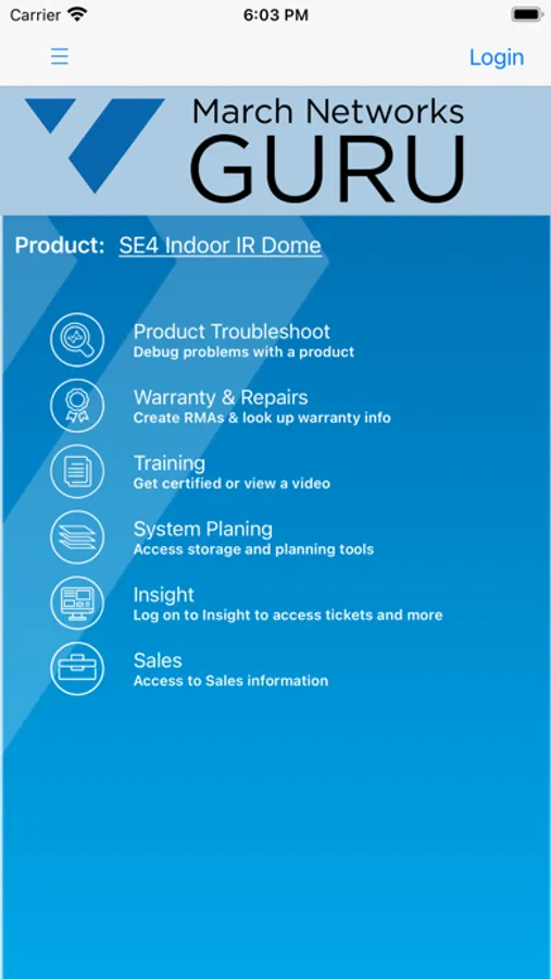 The March Networks® GURU Smartphone Application delivers the insight and knowledge you need by putting advanced diagnostic information, tools and support right at your fingertips. With GURU, you’ll instantly have access to the collective brainpower of a virtual technical support team, with troubleshooting tips, video tutorials, RMA shipment status, warranty status, and much more.