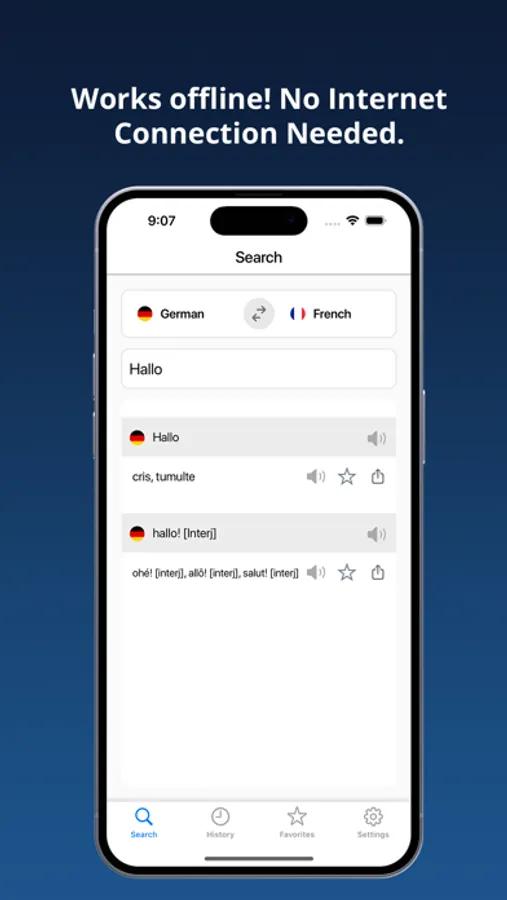 * Works offline! No Internet connection needed, the perfect translator for your trips, your studies, or when no data connection is available.