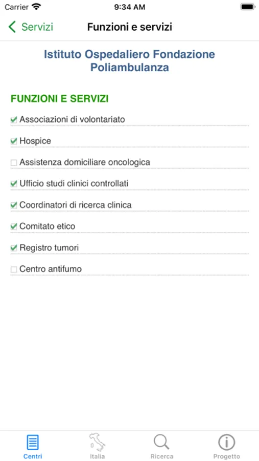 ONCO Italia fornisce l'elenco delle strutture oncologiche italiane, corredate dalla lista dei servizi sanitari, dei contatti e dei reparti di specializzazione offerti da ogni struttura pubblica o privata. I servizi e le caratteristiche delle strutture sono descritti con uno schema sintetico e facilmente comprensibile. Le informazioni sono raccolte grazie al progetto "Libro Bianco dell'Oncologia Italiana" dell'AIOM (Associazione Italiana di Oncologia Medica) relativo al censimento del sistema assistenziale oncologico che, con cadenza annuale, aggiorna i dati.