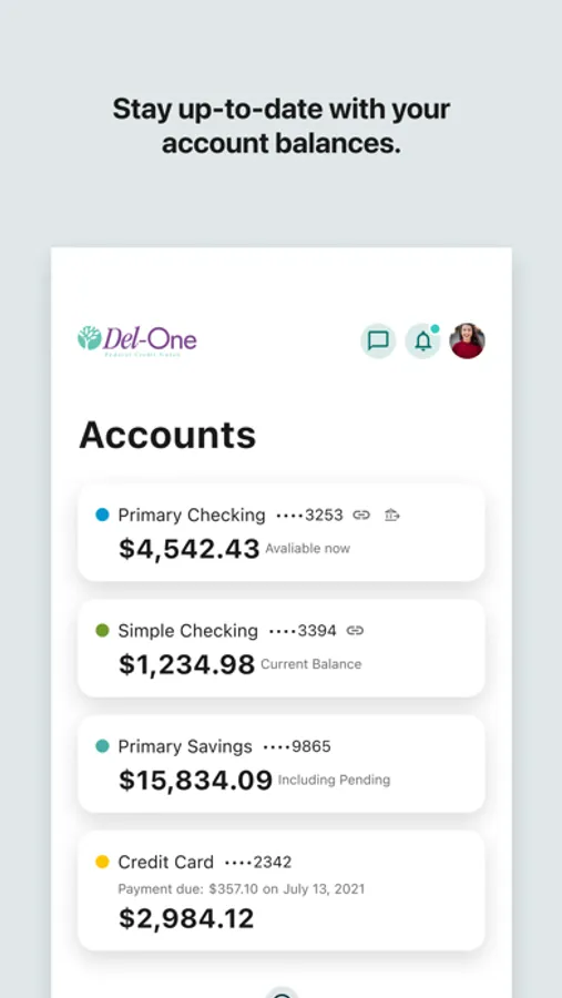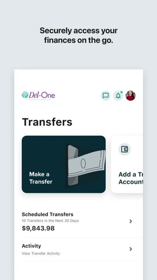 Del-One Mobile App is a secure, convenient way to access your accounts anytime, anywhere, using your mobile device. This application allows you to: