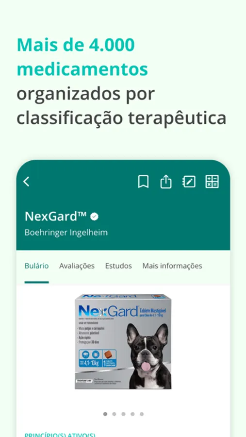 Em nosso bulário veterinário totalmente online, você encontra um catálogo de mais de 4.000 produtos de cães e gatos revisados constantemente, além de conferir informações completas sobre medicamentos e alimentos, como: