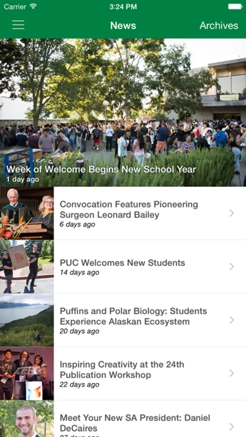 The official Pacific Union College iOS app keeps you up to date with what is happening on and off-campus. Stay up-to-date and connected with events, news, classes, the Cafe menu and so much more.
