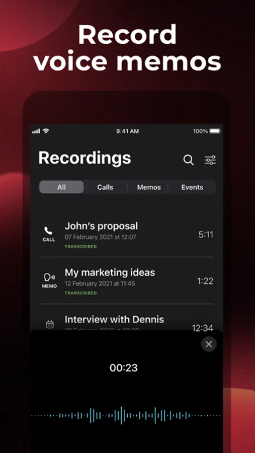 * Remind yourself to follow up on phone calls or recordings with the new voice memo (and transcription) feature