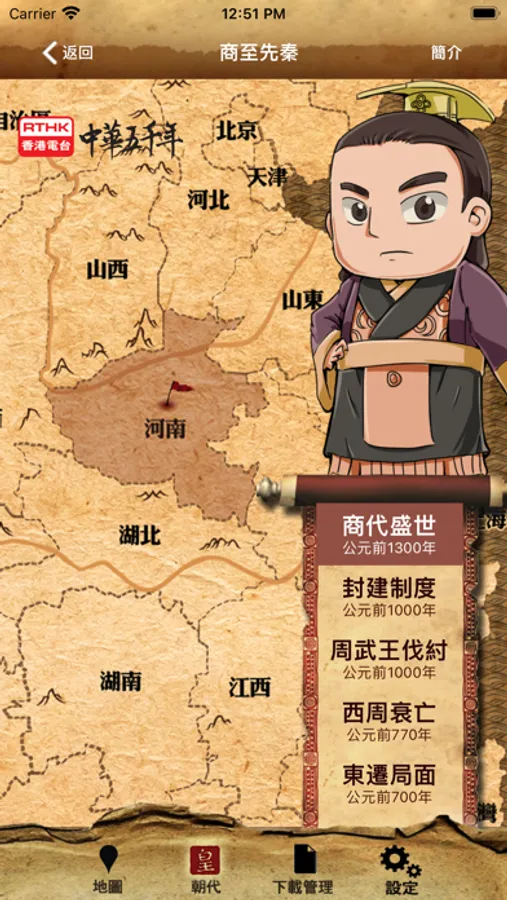 《RTHK中華五千年》從中華五千年的歷史中,精選盛世朝代,將當中無數風流人物、精彩故事,化成聲音與漫畫,助你輕鬆了解中國盛世,同時一窺同期世界大事的輪廓。