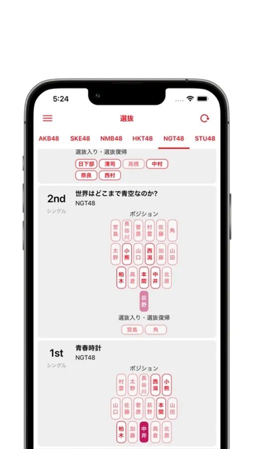 AKB48、SKE48、NMB48、HKT48、NGT48、STU48までこのアプリ一つで網羅しています!