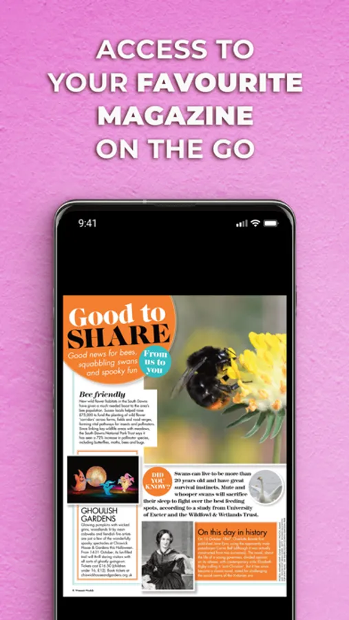 Delicious recipes developed and tested in the magazine's own kitchen, the latest health news, entertaining short stories, brilliantly edited fashion features and beauty advice, gorgeous craft and home ideas and absorbing real life stories. No other weekly magazine offers the range of topics and issues we cover and no other weekly magazine can boast a readership that is as loyal, engaged and responsive as ours.